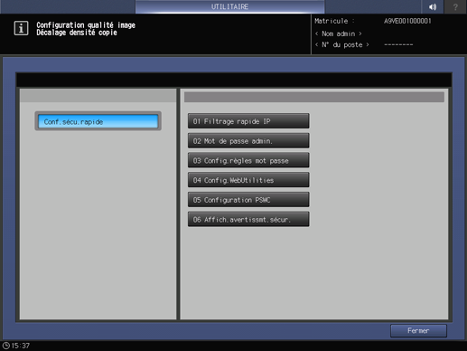 Suivez la procédure sur Affichage de l'écran Menu configuration sécurité rapide pour afficher l'écran Menu Conf.sécu.rapide.