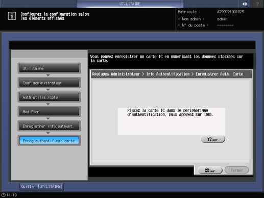Appuyez sur Enregistrer info.authent. pour enregistrer une carte IC.