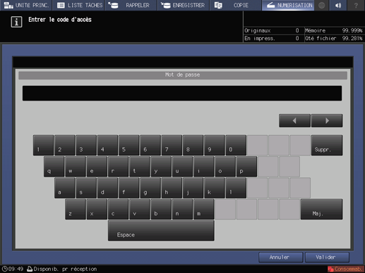 Appuyez sur l'onglet NUMÉRISATION pour afficher l'écran NUMÉRISATION.