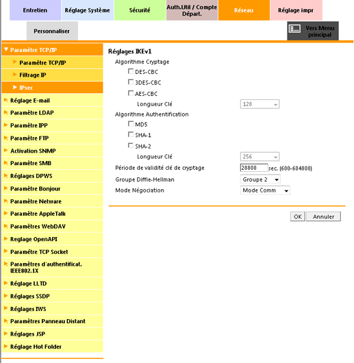 Sécurité|[Configuration IPsec] : réglage IKEv1