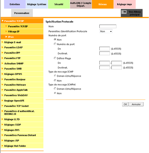 Sécurité|[Configuration IPsec] : configuration de protocole