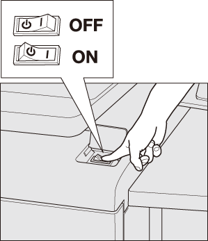 Quand le message Refroidissement en cours/La machine est mise hors tension automatiquement ou Mise à l’arrêt en cours/ne pas couper l'alimentation s'affiche, si l'interrupteur principal est en position d'arrêt, cela peut causer de graves problèmes sur la machine, notamment en termes de fixation toner.