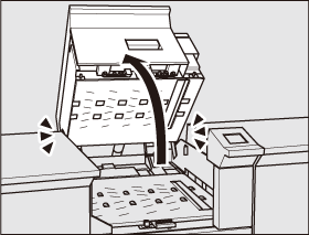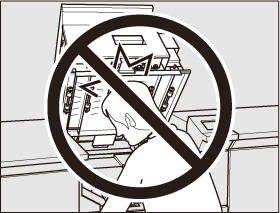 Ne mettez pas l'interrupteur principal ou l'interrupteur secondaire sur Arrêt lorsque vous enlevez du papier coincé. Sinon, il ne sera pas possible de tirer les magasins ou l'unité de transport et de fixation.