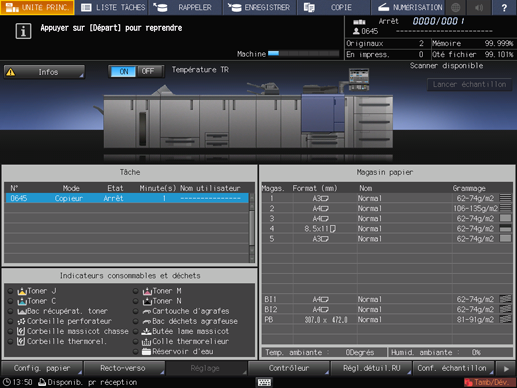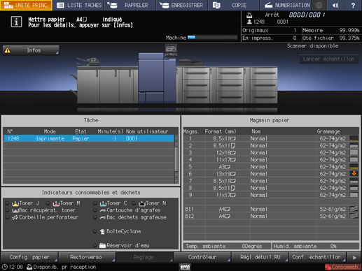 Approvisionnement en papier (tâche d'impression et tâche de copie)