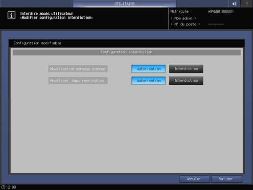 Dans tous les cas, l'écran Autorisation/Interdiction réapparaît.