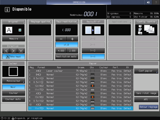 4. Sélectionnez du papier A3 short edge feed, et appuyez sur la touche Départ du panneau de contrôle.