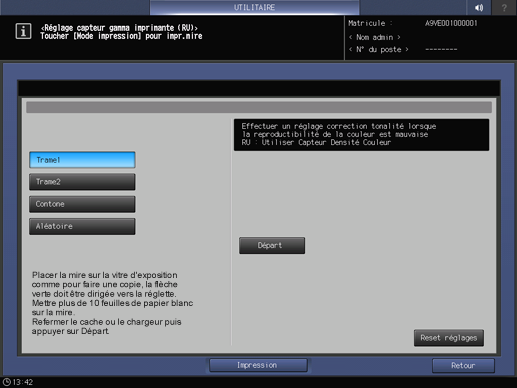 Explication supplémentaireLes trames disponibles ici sont les mêmes que celles du réglage gamma imprimante.