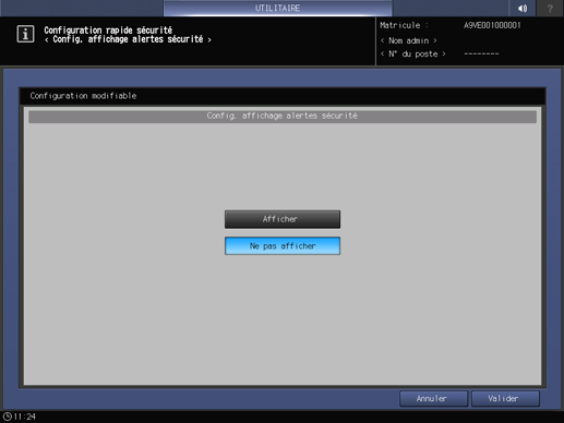 Sélectionnez d'afficher ou non l'écran Configuration sécurité.