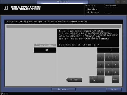 Effectuez ce réglage à la fin du Réglage imprimante - Restitution verticale.