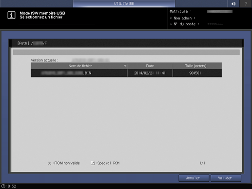 * Lorsque vous souhaitez afficher uniquement le fichier BIN et les fichiers ROM compatibles avec le périphérique de destination, appuyez sur Limiter.