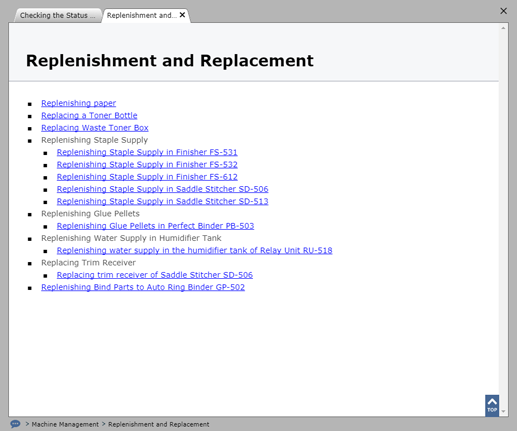Si la page Table des matières est spécifié comme lien de référence dans le texte, elle s'ouvre sous forme de fenêtre modale. Si vous cliquez sur la table des matières, l'élément s'ouvre sous forme de nouvel onglet dans la fenêtre.