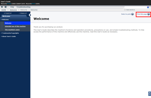 Un clic sur Imprimer cette page dans le coin droit de l'écran imprime la page affichée.