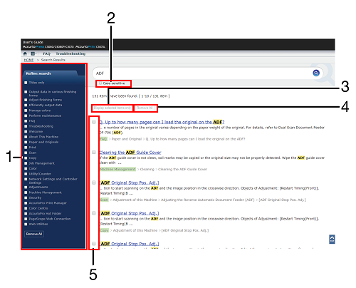 3 | Afficher éléments sélectionnés uniquement | Cliquez dessus pour n'afficher que les éléments sélectionnés en cochant la case Affiner. Si vous fermez le navigateur Web ou effectuez une autre recherche à l'aide d'un autre mot-clé, l'affichage est réinitialisé. |