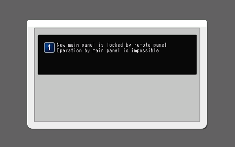 Explication supplémentaireLorsque la machine est en état de verrouillage du panneau et que toutes les opérations sont exécutées sur l'écran tactile ou sur le panneau de contrôle, l'écran tactile affiche l'écran qui vous informe que le panneau est verrouillé. Aucune opération n'est exécutable pendant l'affichage de cet écran. Après l'affichage de l'écran pendant 3 secondes, l'écran tactile de la machine est à nouveau éteint et les opérations peuvent être exécutées sur le panneau distant en temps réel.