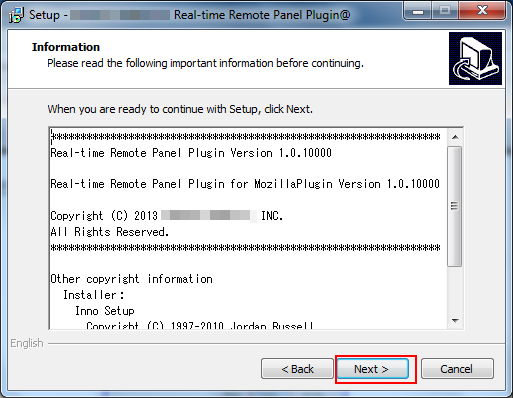 Programme d'installation du plug-in du panneau distant en temps réel pour Windows | Setup.exe | Programme d'installation | Un fichier d'exécution de l'installation |