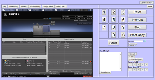 La fenêtre du navigateur affiche l'écran tactile et le panneau de contrôle actuellement affichés sur la machine.