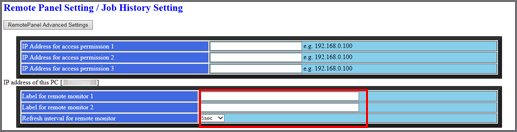 Cliquez sur Remote Panel Setting/Job History Setting.