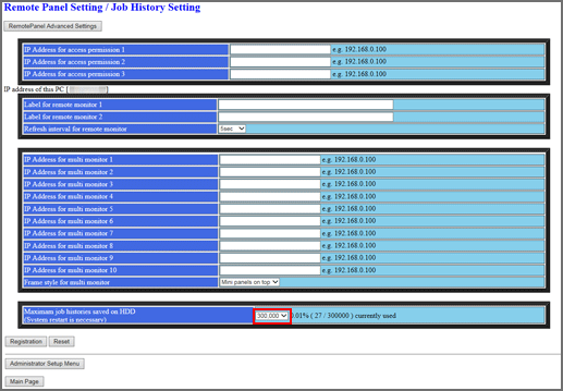 Cliquez sur Remote Panel Setting/Job History Setting.