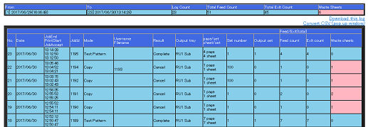 Convertir en CSV (fenêtre contextuelle) | Affiche l'historique des tâches au format CSV dans une autre fenêtre. |