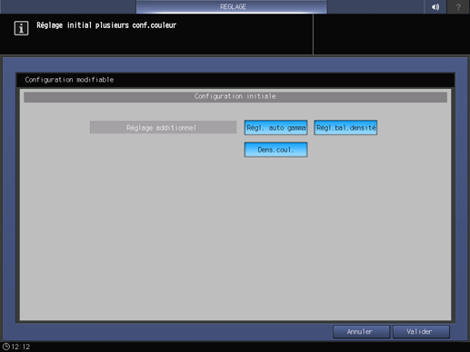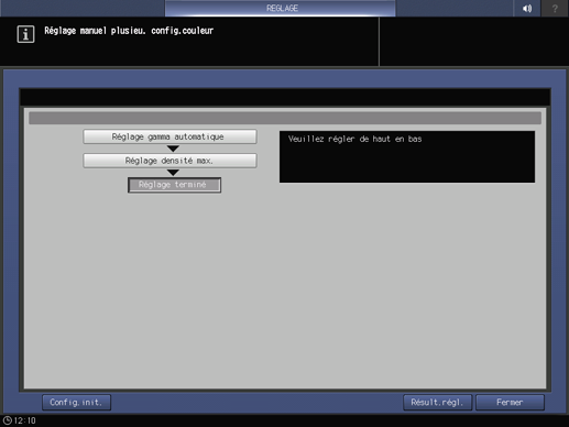 Avant d'effectuer des réglages, vous pouvez appuyer sur Config.init. pour changer les paramètres de réglage s'il y a lieu.