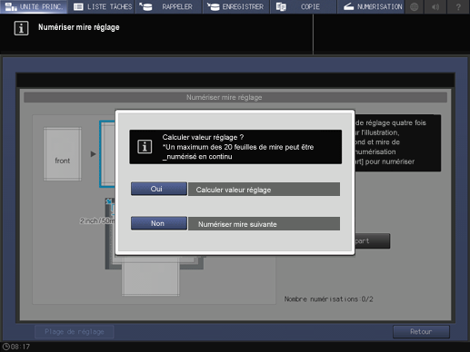 Pour terminer la mesure de la numérisation et calculer la valeur de réglage, appuyez sur Oui.