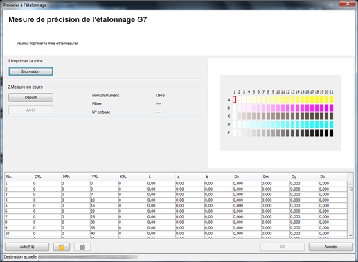 L'écran Mesure de la précision de l'étalonnage G7 s'affiche.