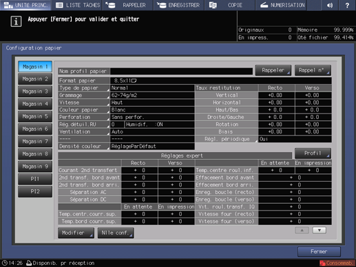 Avant la création d'un profil d'imprimante, charger le papier dans un magasin et l'enregistrer. (Voir Gestion papier.)