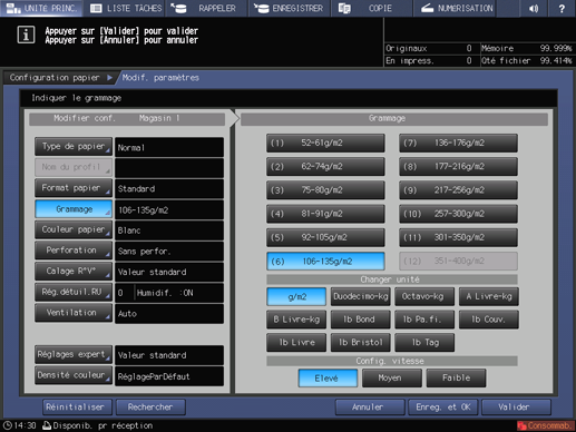 Exemple : sélectionnez (6) 106-135 g/m2 / 29-36 lb Bond.