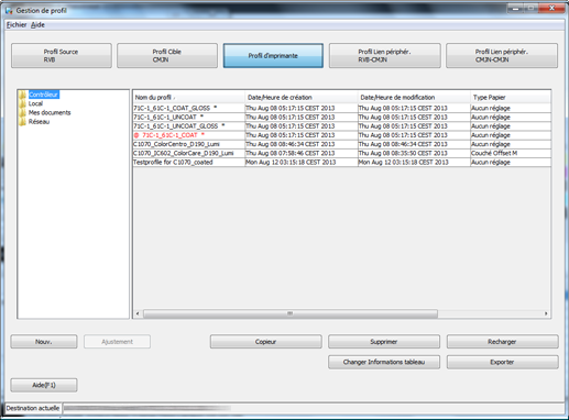 1. Cliquez sur l'onglet Gestion de profil sur l'écran supérieur Color Centro. (Voir Ecran [Color Centro].)
