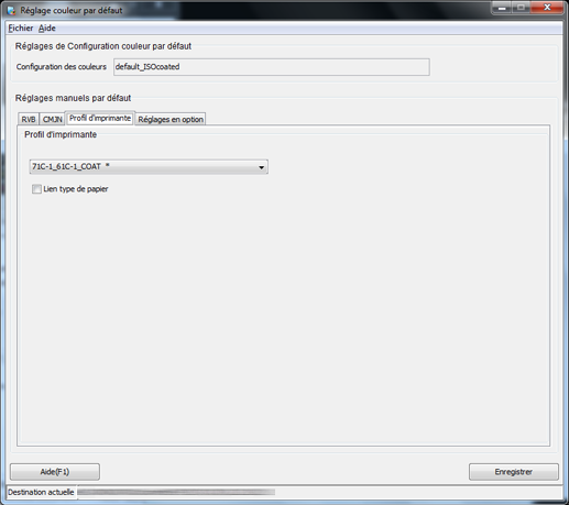 Avec Color Centro, vous pouvez définir un lien de type de papier vers un profil d'imprimante enregistré et l'enregistrer comme profil d'imprimante par défaut.