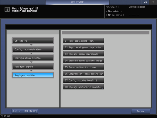 A l'aide de l'écran tactile de la machine, attribuez des trames dans le menu Config. administrateur.