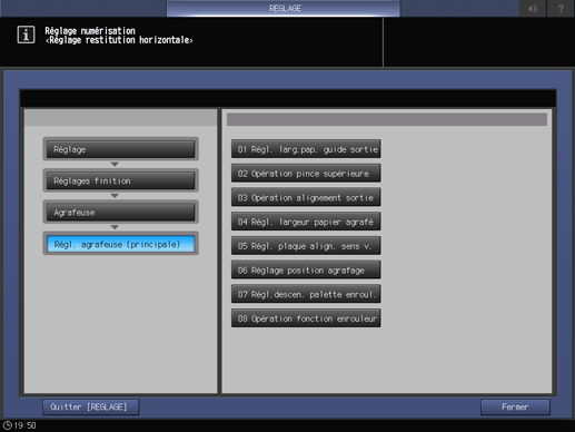 Appuyez sur Rég. agrafeuse (principale) dans le menu Agrafeuse.