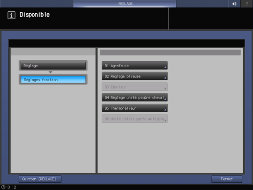 Appuyez sur Réglages finition sur l'écran Menu Réglage.
