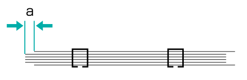 Vérifiez l'écart d'alignement ('a'ci-dessous) de la pile de papier. Si la largeur définie est supérieure à la largeur réelle du papier, il y a désalignement.