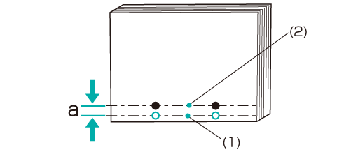 • Quand la distance entre le bord du document perforé et la position des trous perforés est trop faible ou trop grande, cette fonction vous permet de rapprocher ou d'éloigner la position des trous perforés en spécifiant la valeur désirée.