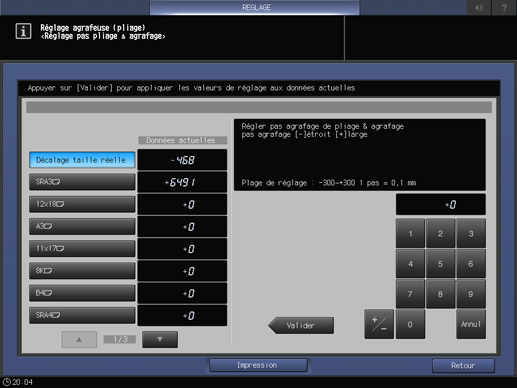 Appuyez sur Retour réglage pour revenir à l'écran Espacement agrafes Pliage&Agrafage.