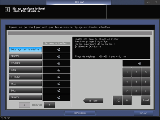 Appuyez sur Retour réglage pour revenir à l'écran Position pliage Pliage&Agrafage .