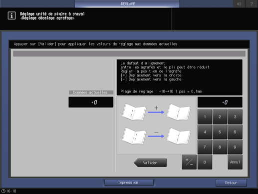 Appuyez sur Retour réglage pour revenir à l'écran Réglage décalage agrafage.