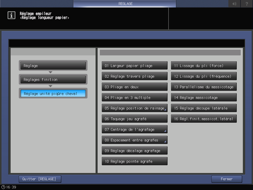 L'écran Menu Réglages piqueuse à cheval réapparaît.
