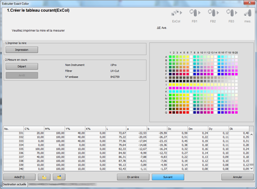 L'assistant vous permet de créer un tableau de correction avec la fonction Exact Color et d'appliquer le tableau de correction dans le contrôleur comme retour d'information pur améliorer la précision de reproduction des couleurs.