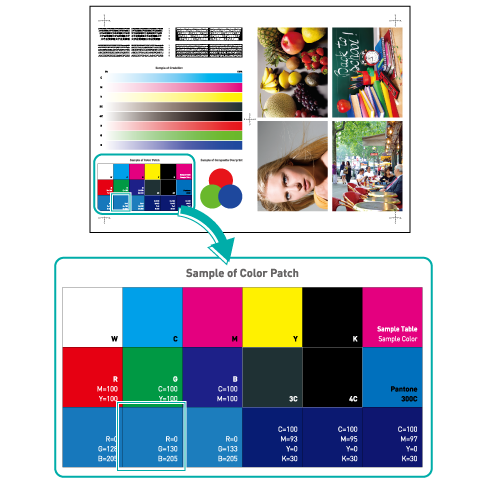 Cette section présente les modalités d'enregistrement de la couleur alternative suivante de la couleur RVB originale et l'impression avec la couleur de remplacement.