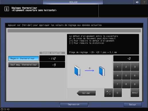 Appuyez sur Magasin thermorelieur. Entrez la valeur de réglage et appuyez sur Valider.