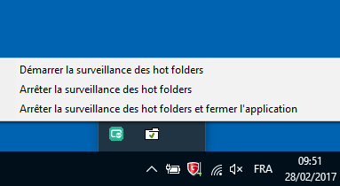 Lorsque l'icône s'affiche dans la barre des tâches, faites un clic droit sur l'icône et cliquez sur Arrêter suivi des hot folders et fermer l'application.
