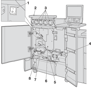 1 | Interrupteur principal | Exclusivement réservé au technicien SAV. pour mettre la machine sous et hors tension. Veillez à ne pas l'actionner lors des opérations habituelles. |