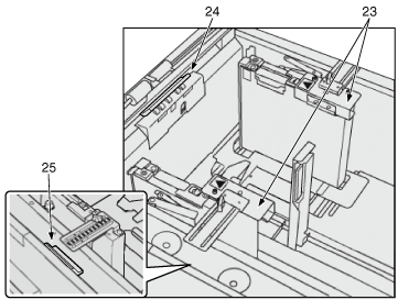 23 | Guides latéraux auxiliaires (2 pièces) | Fixez ces guides aux plaques-guide latérales pour charger du papier à onglet. |