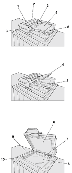 2 | Réglette d'original du chargeur Auto | Indique les formats d'original disponibles, la face à exposer et les originaux incompatibles. |