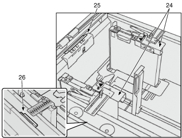 22 | Plaques-guide latérales (2 pièces) | Permettent d'aligner les bords du papier chargé. |