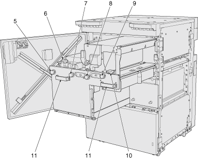 11 | Poignée [IQ8] | Actionnée pour déployer l'unité en cas de bourrage papier. |