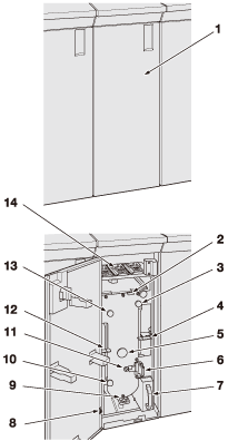 A ouvrir pour permettre le remplacement d'un emporte-pièce ou l'enlèvement des déchets de perforation ou le dégagement des feuilles coincées.