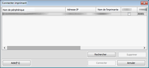 Recherche | Affiche l'écran Chercher imprimantes. Recherchez cette machine. |